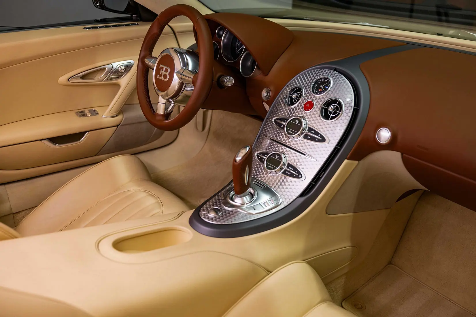 The Bugatti Veyron 16.4 showcases advanced engineering through its ability to produce 1,001 hp, accelerate from 0 to 100 km/h in 2.5 seconds, and achieve a top speed exceeding 400 km/h. Despite these high-performance metrics, the Veyron remains suitable for daily use, providing a high level of comfort for both the driver and passenger. The Veyron is powered by a massive mid-mounted, quad-turbocharged 8.0-liter W-16 engine and a seven-speed dual-clutch transmission.