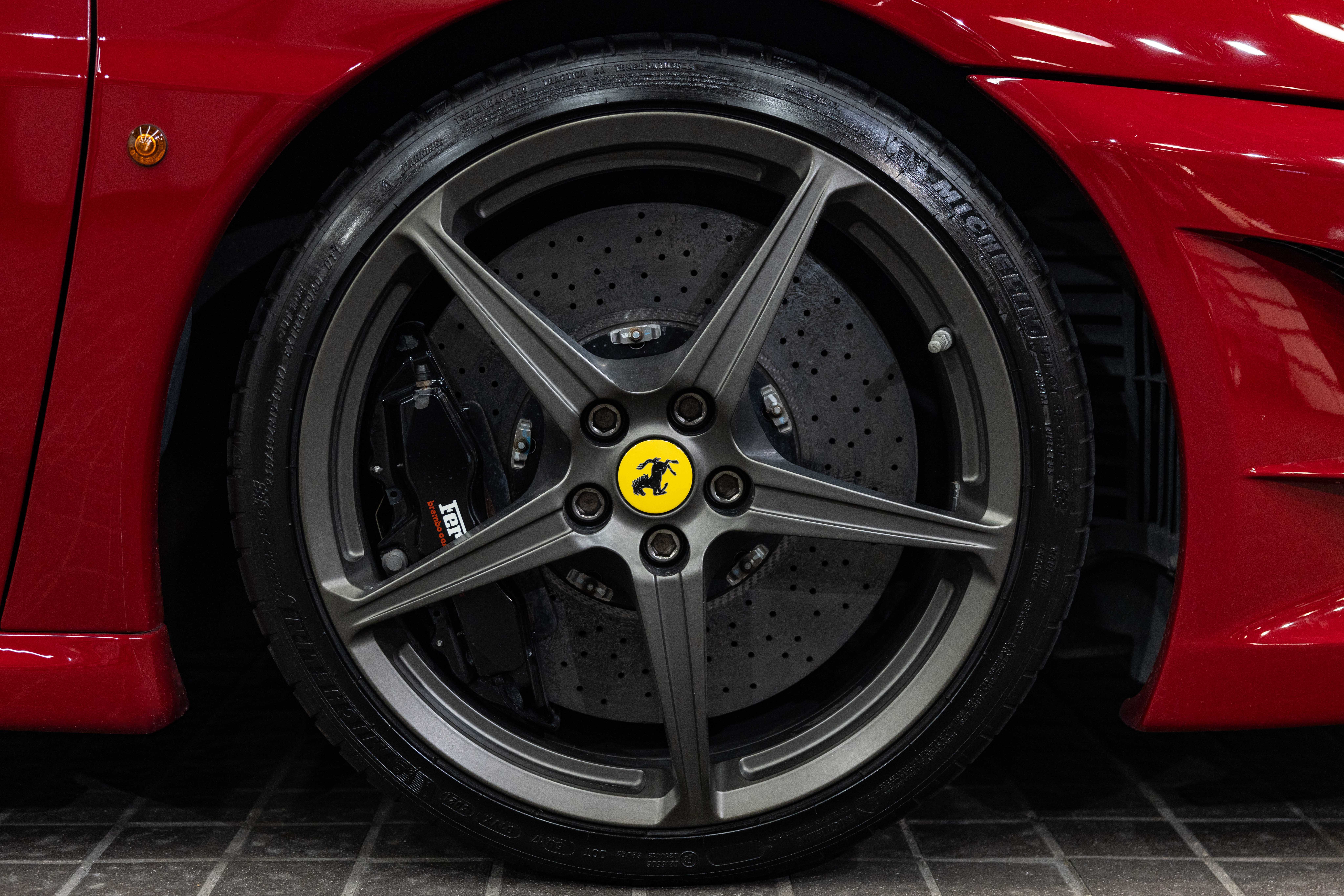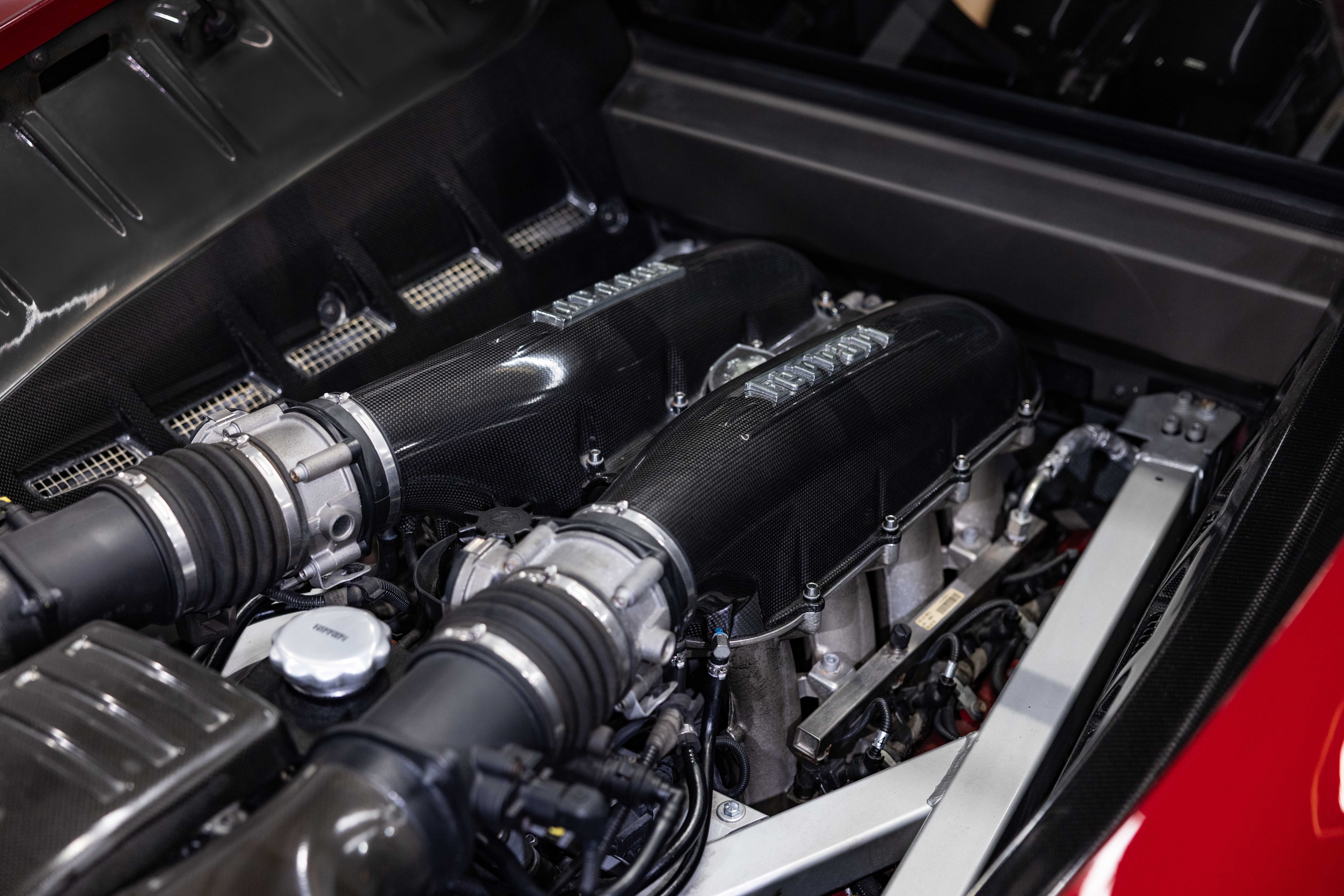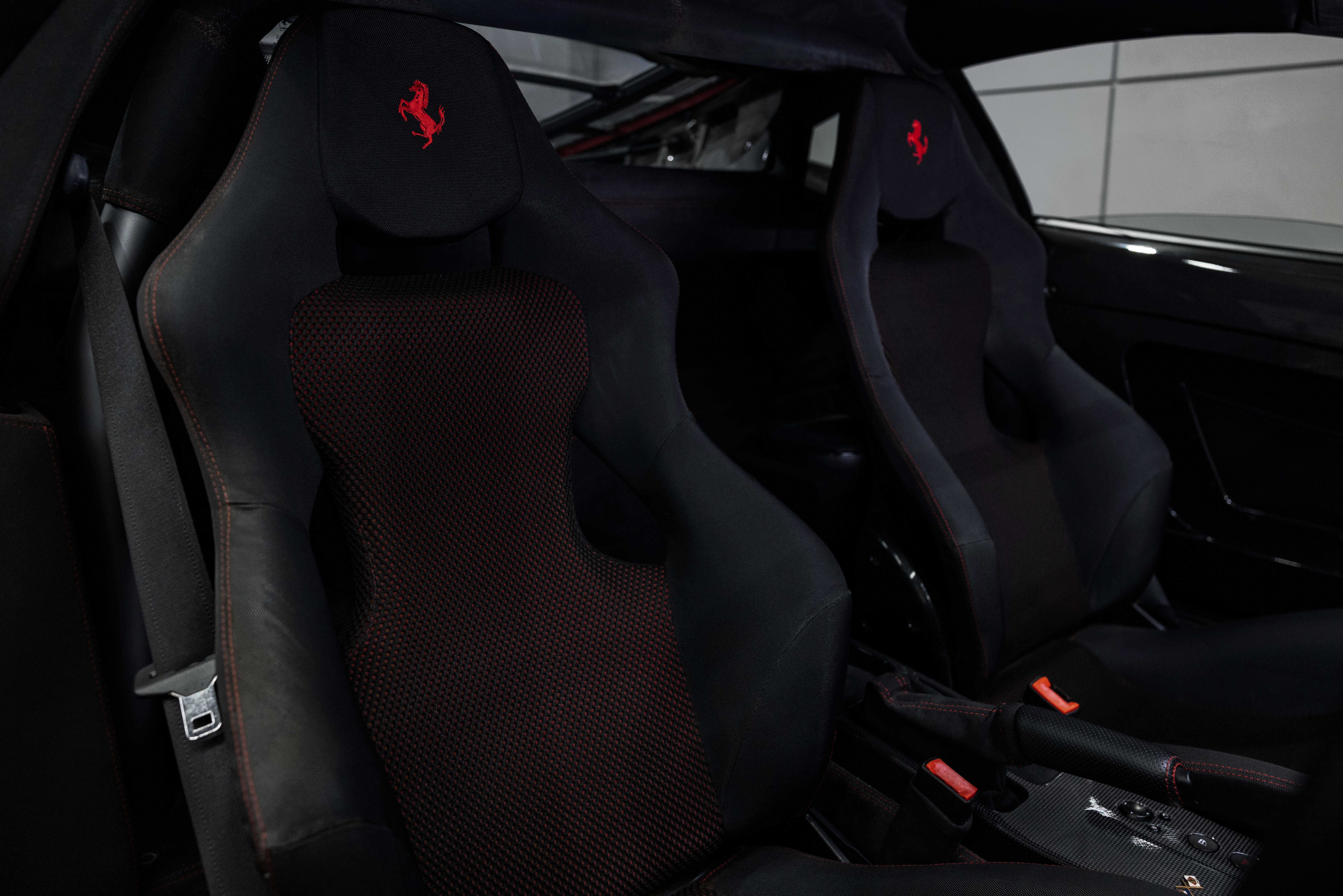 This example here is finished in a rare shade of Rosso Mugello, with desirable roll bar, alcantara interior, and Scuderia 16M 19″ forged wheels. It has also been serviced regularly and is ready for the next owner to enjoy. Please contact us right away if you are interested in this exhilarating track-focused lightweight Ferrari.
