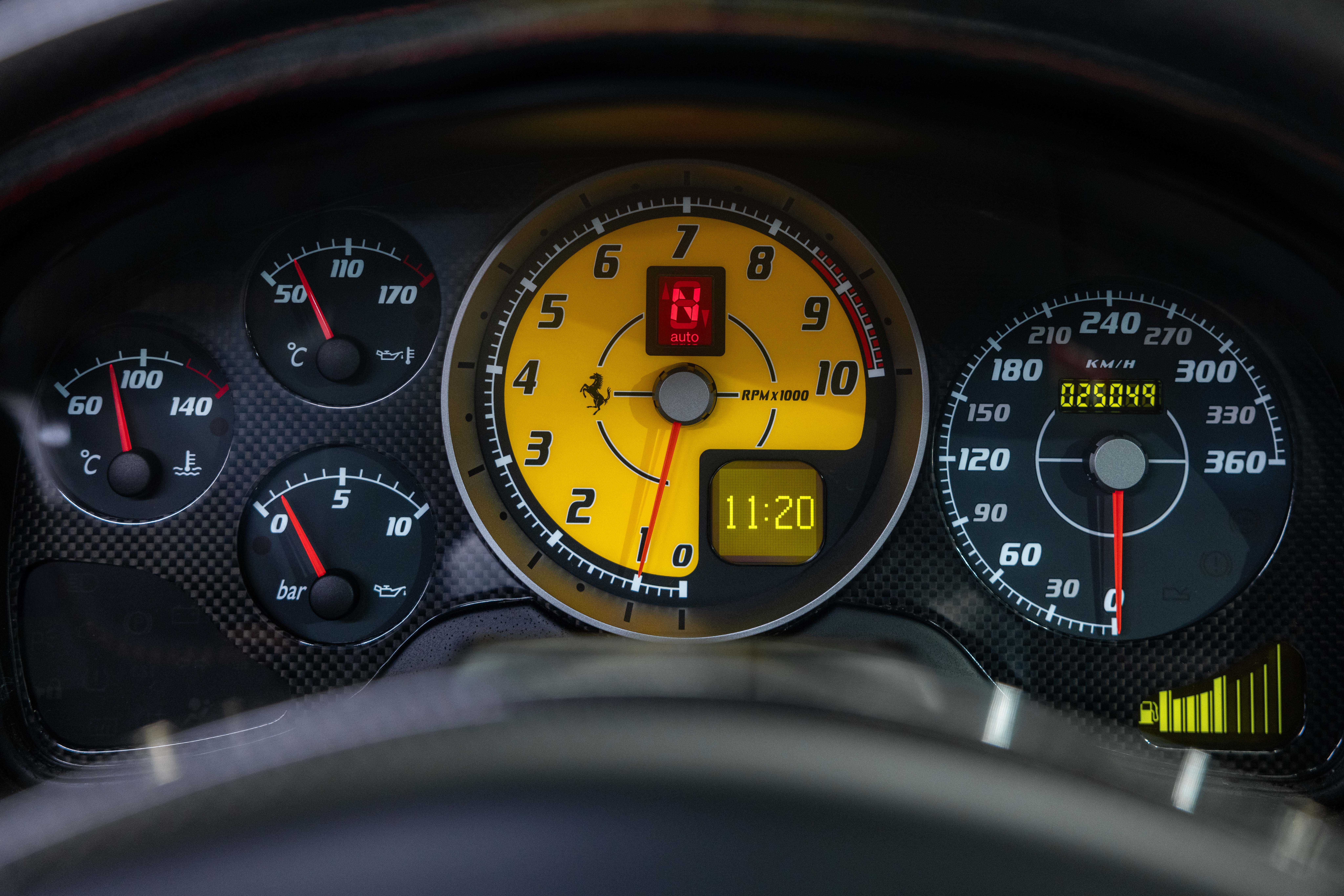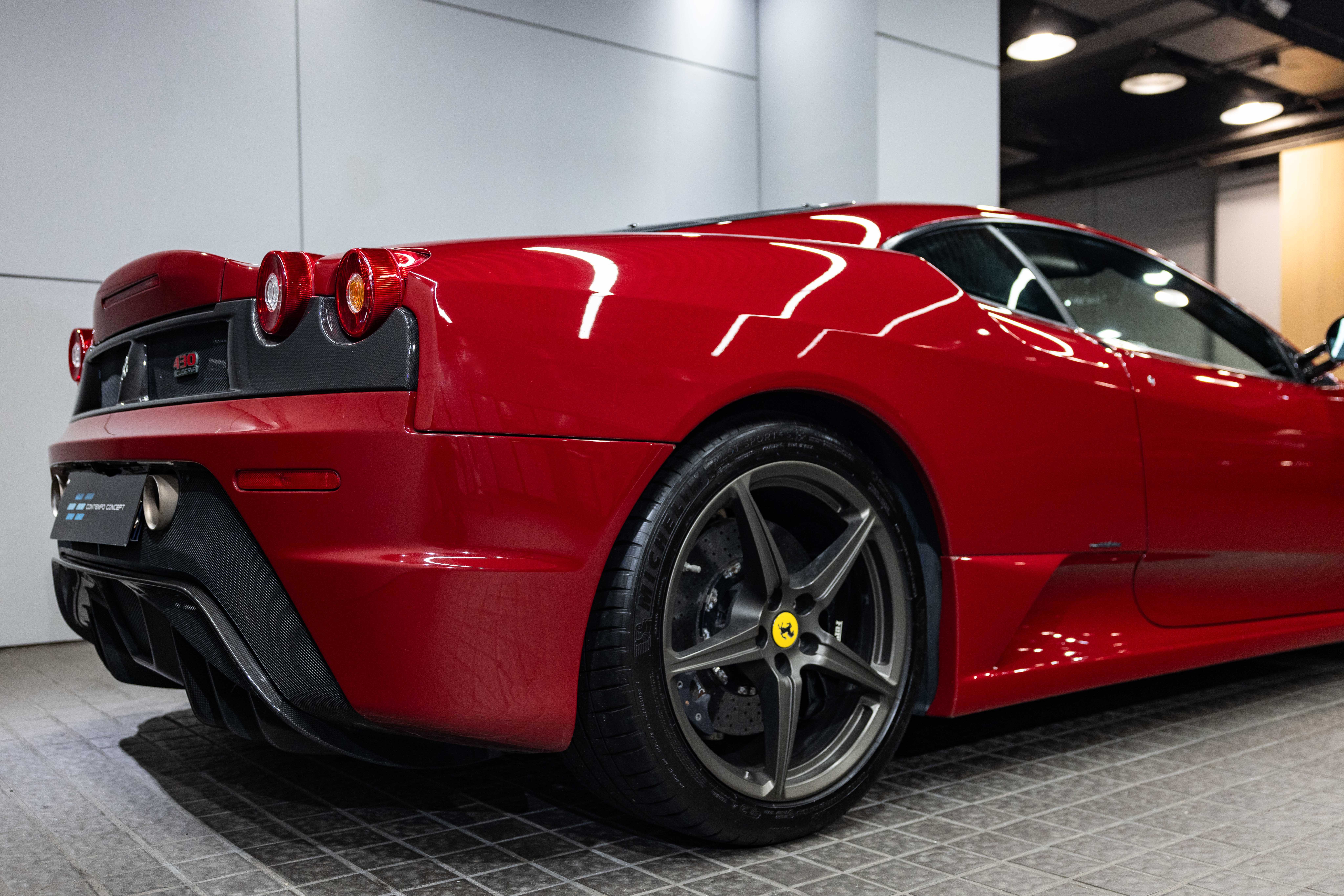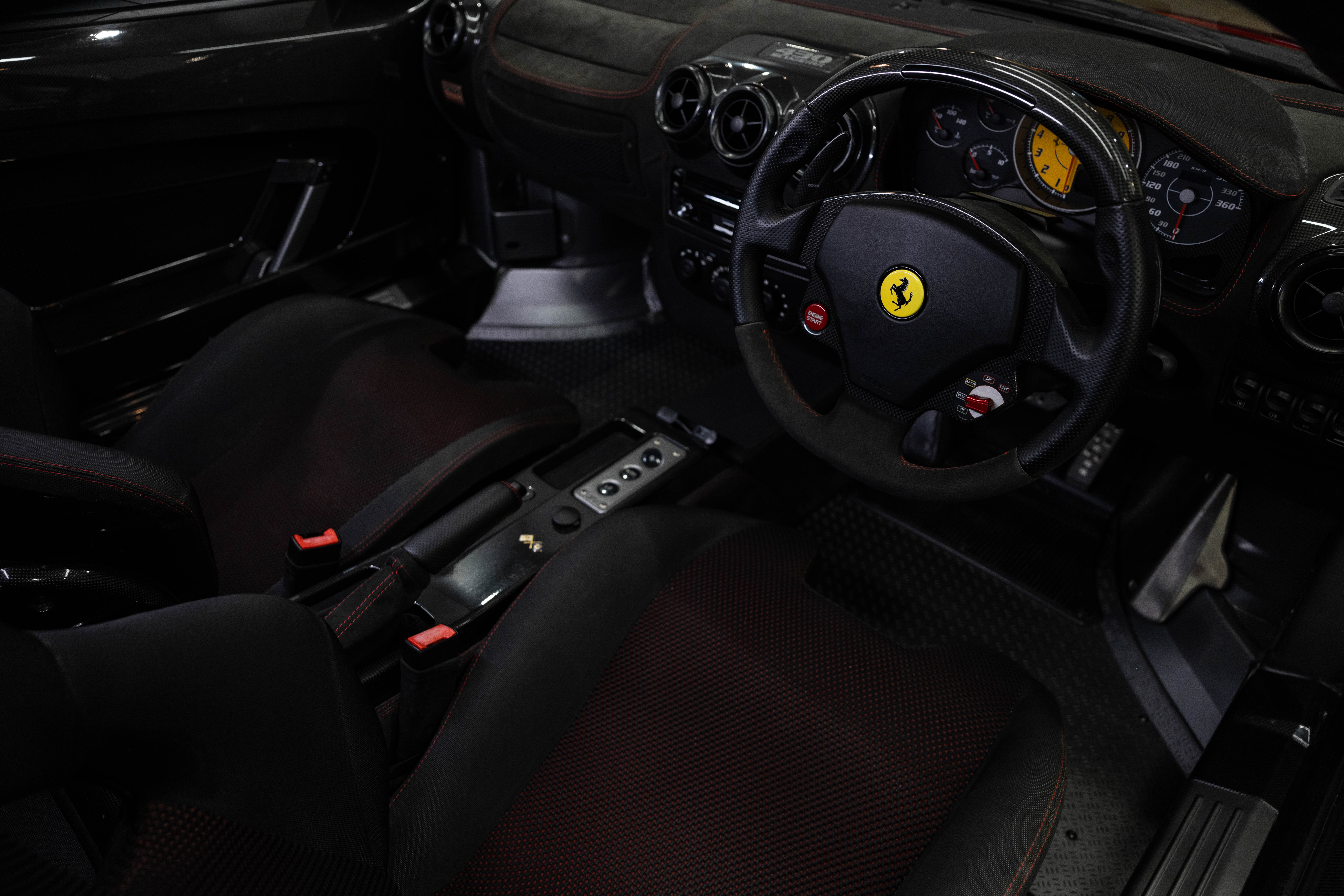 This example here is finished in a rare shade of Rosso Mugello, with desirable roll bar, alcantara interior, and Scuderia 16M 19″ forged wheels. It has also been serviced regularly and is ready for the next owner to enjoy. Please contact us right away if you are interested in this exhilarating track-focused lightweight Ferrari.