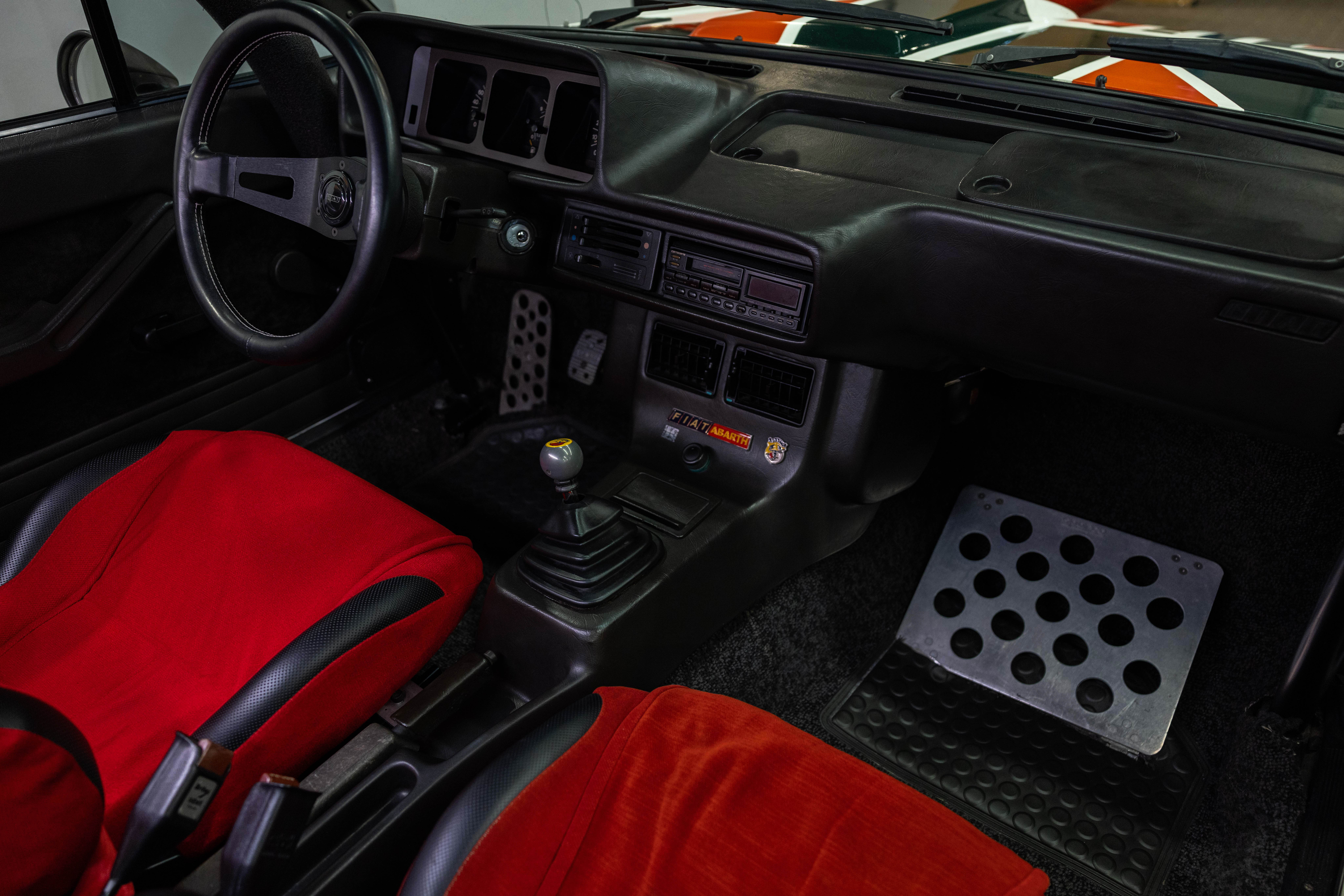 The standard Fiat 131 was just an ordinary family saloon until Fiat chose to enter the ‘Group 4’ Rally Championship with the 131, and to involve Abarth and Bertone, which changed everything. Their rallying efforts led to major publicity and success, including the 1977, 1978, and 1980 FIA World Rally Constructors’ titles, and the World Rally Drivers Championships in 1978 and 1980. Enthusiasts were thrilled when 400 Stradale road versions, built to meet FIA ‘Group 4’ rules, were released to the public, which turned a bland saloon into an all-surface competition machine. Bertone developed the special bodywork, fitting a fibreglass bonnet and aluminium doors to reduce weight and adding wheel arches to accommodate larger 15” Cromodoras and tyres, air intakes for cooling and spoilers for additional downforce. The results were spectacular: a cohesive design that turned the two-door shopping car into a veritable road rocket.