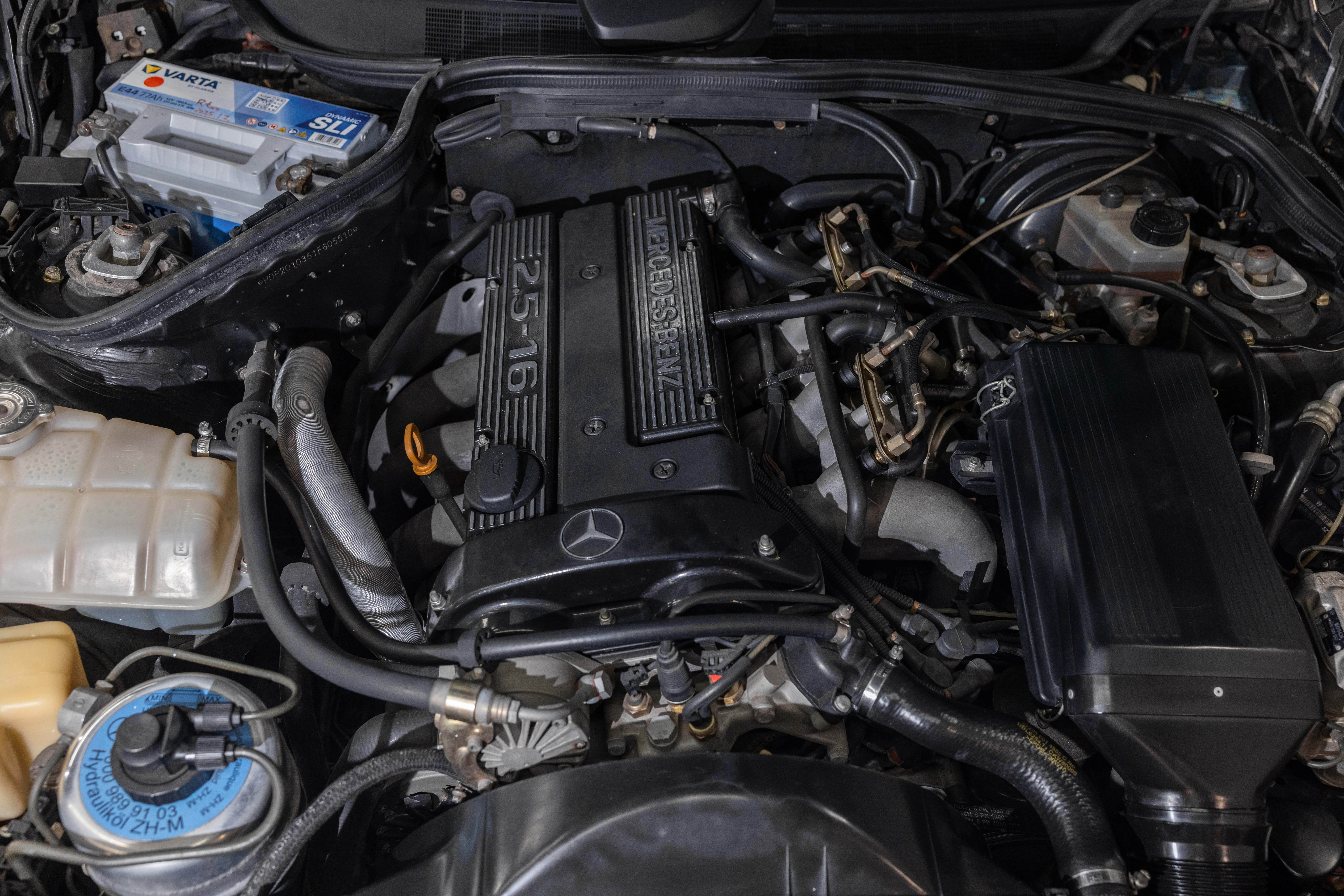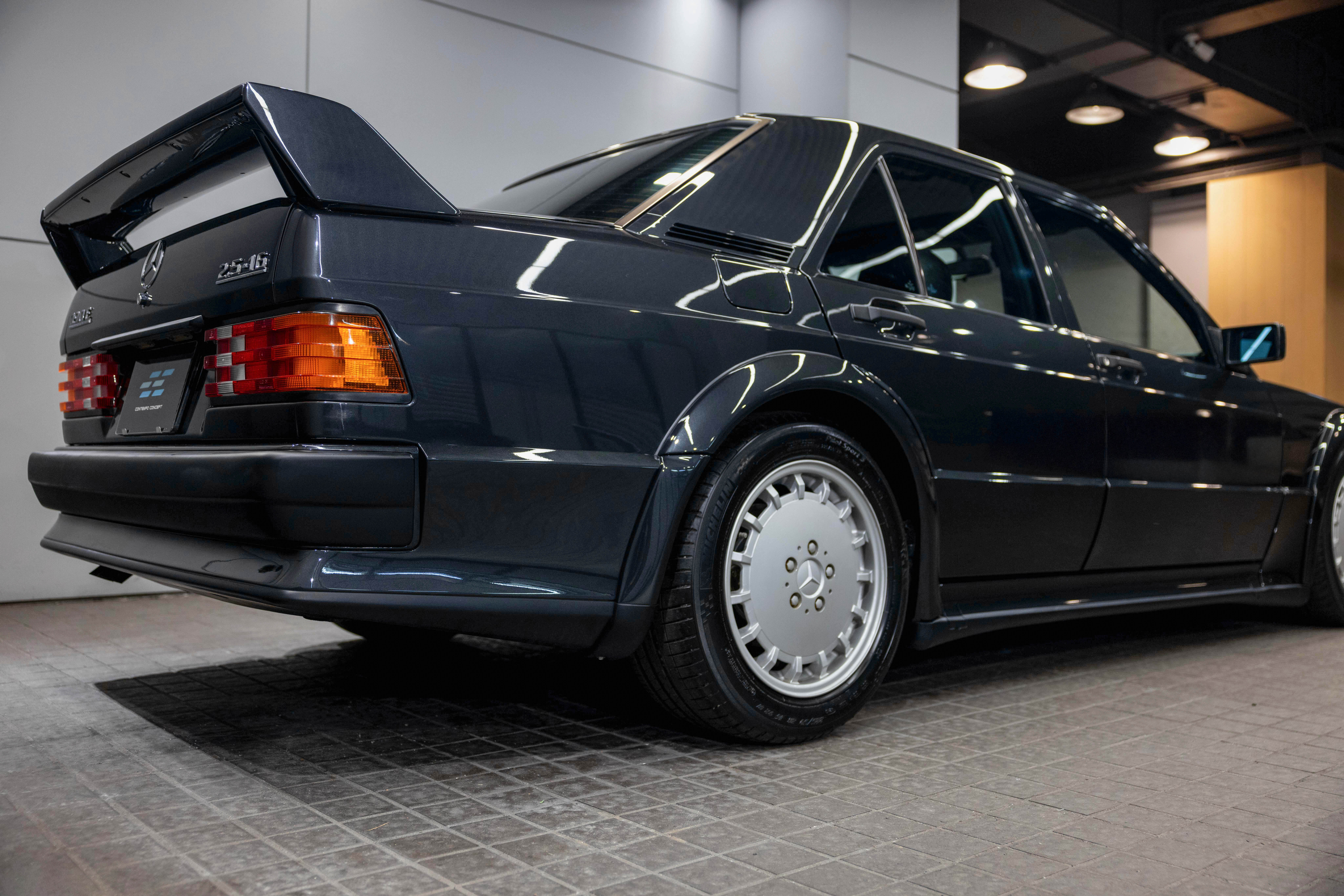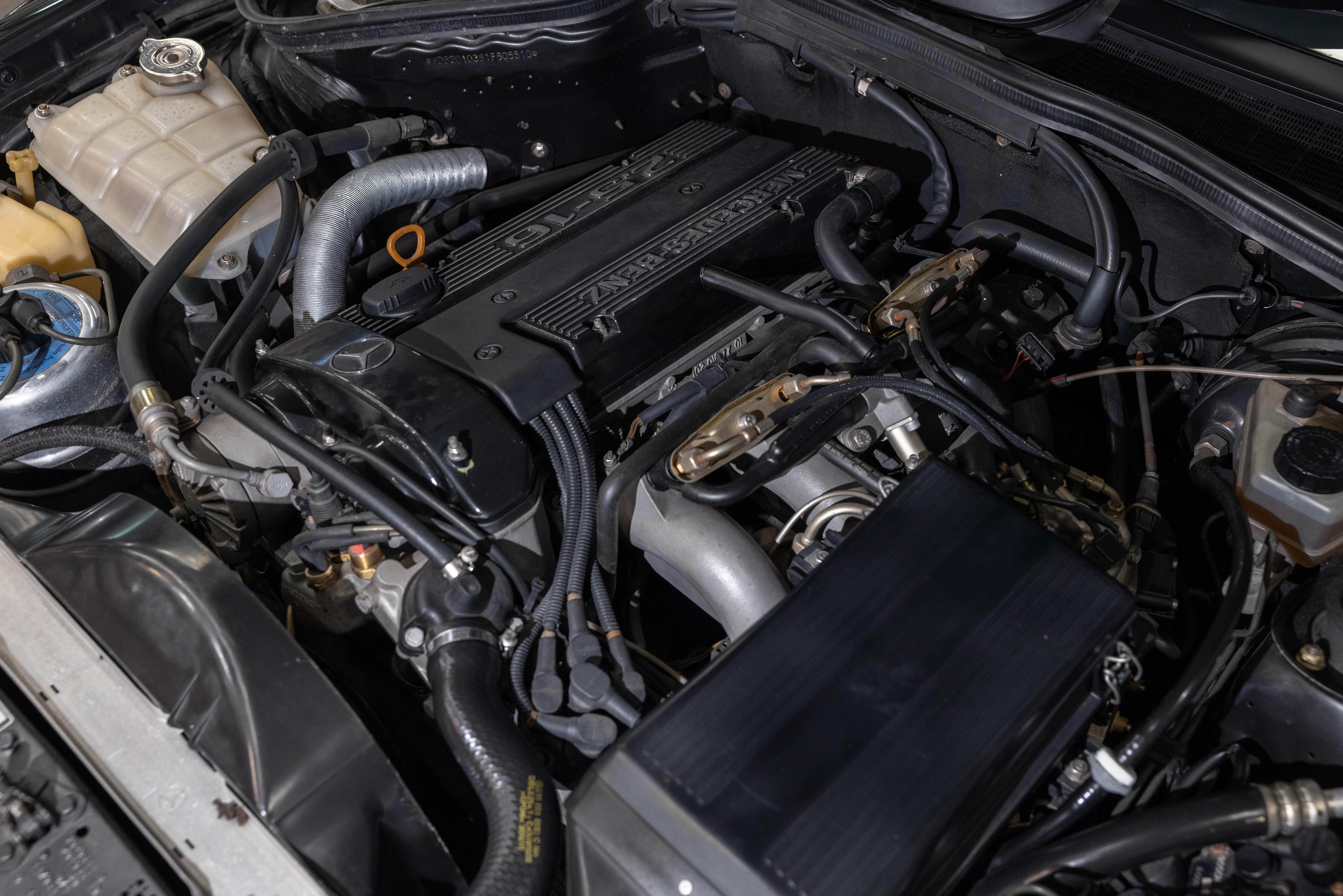 As a hand-built model, the Evo I exemplified Mercedes-Benz quality and exclusivity. It features an upgraded aerodynamic package, enhanced engine, larger brakes, and bigger wheels to homologate these features for the 1989 DTM cars. Its special bodykit included side skirts, a splitter, and a large rear wing, reflecting the peak of 1980s and 1990s tuning. The Evo I is paired with a dogleg Getrag 5-speed manual gearbox as standard, and its 2.5-litre engine produced 205 horsepower, matching the standard 2.5 16V model. There is also a special in-cabin switch-enabled electronic ride-height adjustment for both track and road use, with the default setting 19mm lower than the non-Evo model.