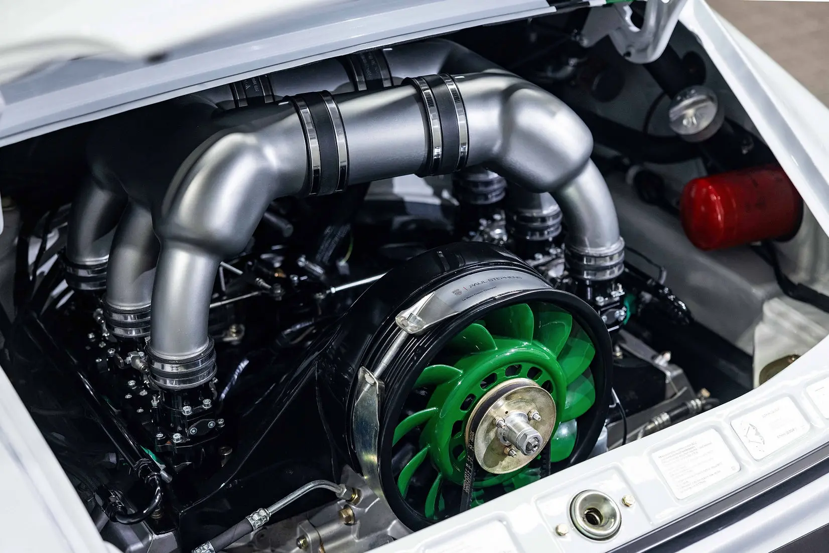 The Le Mans Classic Clubsport is a limited-edition restomod developed by British Porsche specialist Paul Stephens. Each vehicle is constructed from a 911 shell and is comprehensively rebuilt to as-new condition. The model features a lightweight composite roof, bonnet, and bumpers. It is powered by a 3.4-liter air-cooled flat-six engine that produces 300 hp. The 0-100km/h sprint time is just 4.5 seconds, and it reaches a top speed of 281 km/h. Additional technical enhancements include an advanced fuel injection system, a reprogrammed engine control unit (ECU), GT3 RS-specification camshafts, a lightened crankshaft, and lightweight connecting rods. The drivetrain features a lightweight flywheel and a limited-slip differential that distributes power from the five-speed transmission to the rear wheels.